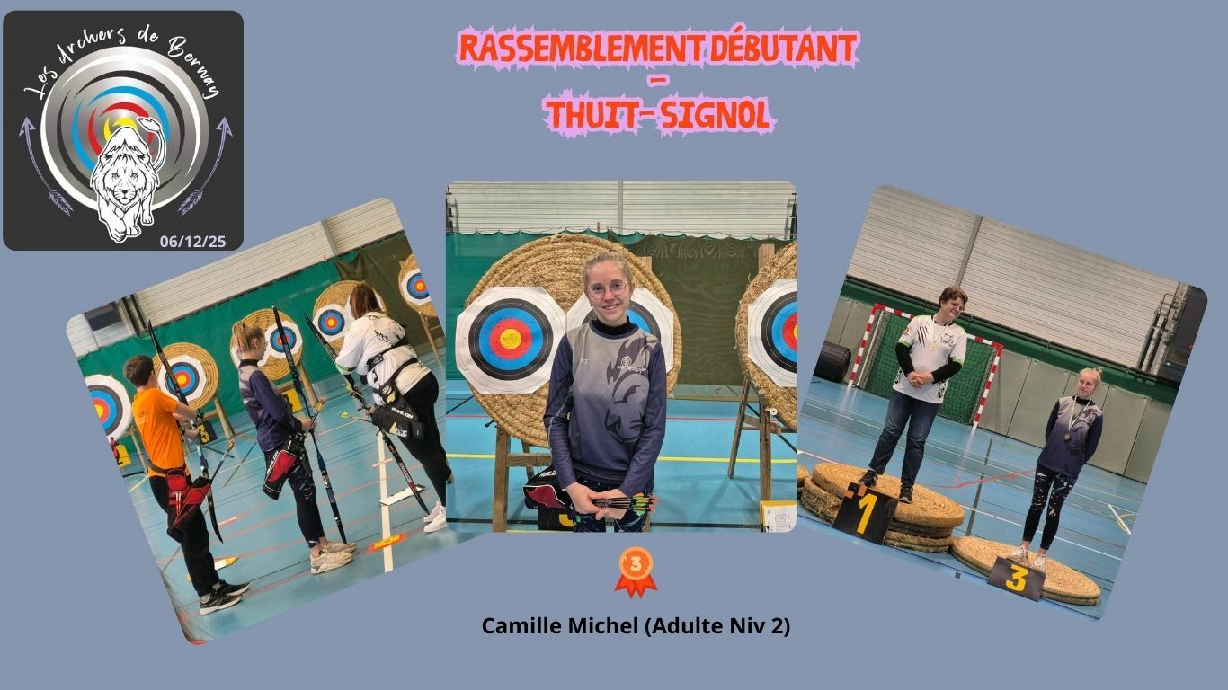 Seule représentante des archers de Bernay au rassemblement débutant organisé par la compagnie des archers de thuit-signol, Camille Michel dans la catégorie Adulte femme niv2 se classe 3ème, synonyme de médaille.